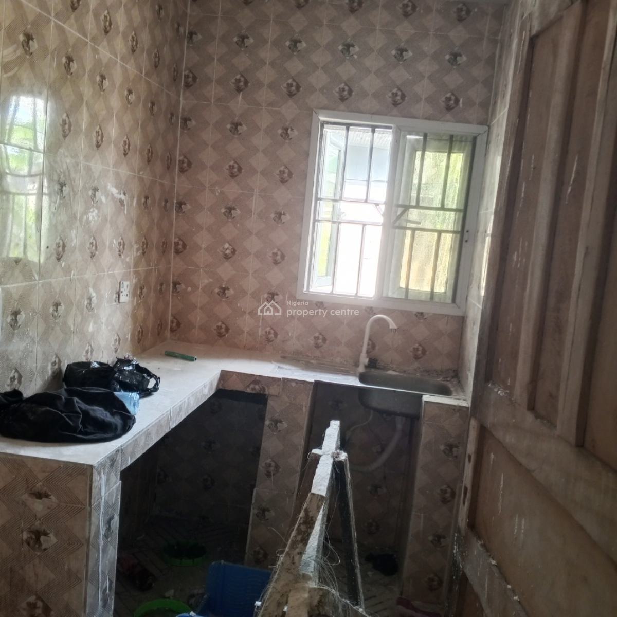 Mini flat with POP, guest toilet, clean running water, kitchen cabinet in a serene compound & neighborhood, walkable distance to the bus stop.